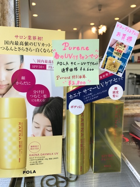 ピュアーネではこの春、POLAの高品質UVケアアイテムを、ご希望のお客様には超特別価格でご奉仕する事になりました♪